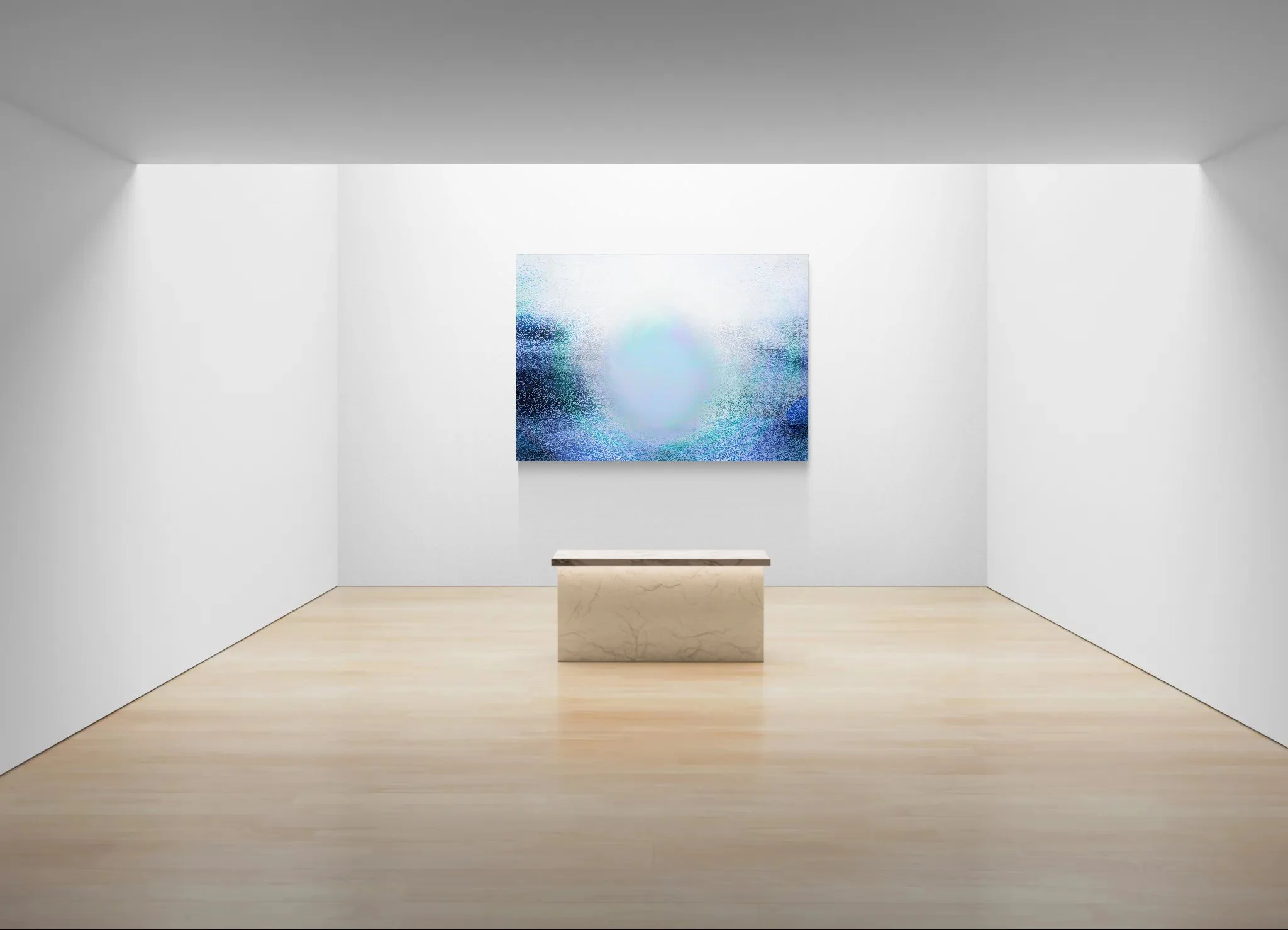 Her name implies the crashing of waves and the spray of rapids, a characteristic reflected in the dynamic composition of this piece. Unlike the stillness of mist, this artwork emphasizes the vitality of water in transition. The central luminous orb suggests a divine core amidst the surrounding turbulence, where light breaks through deep blue depths. By layering intricate, liquid-like textures, the piece explores the tension between chaos and order, inviting the viewer to contemplate the relentless yet life-giving energy of the goddess who commands the tides.