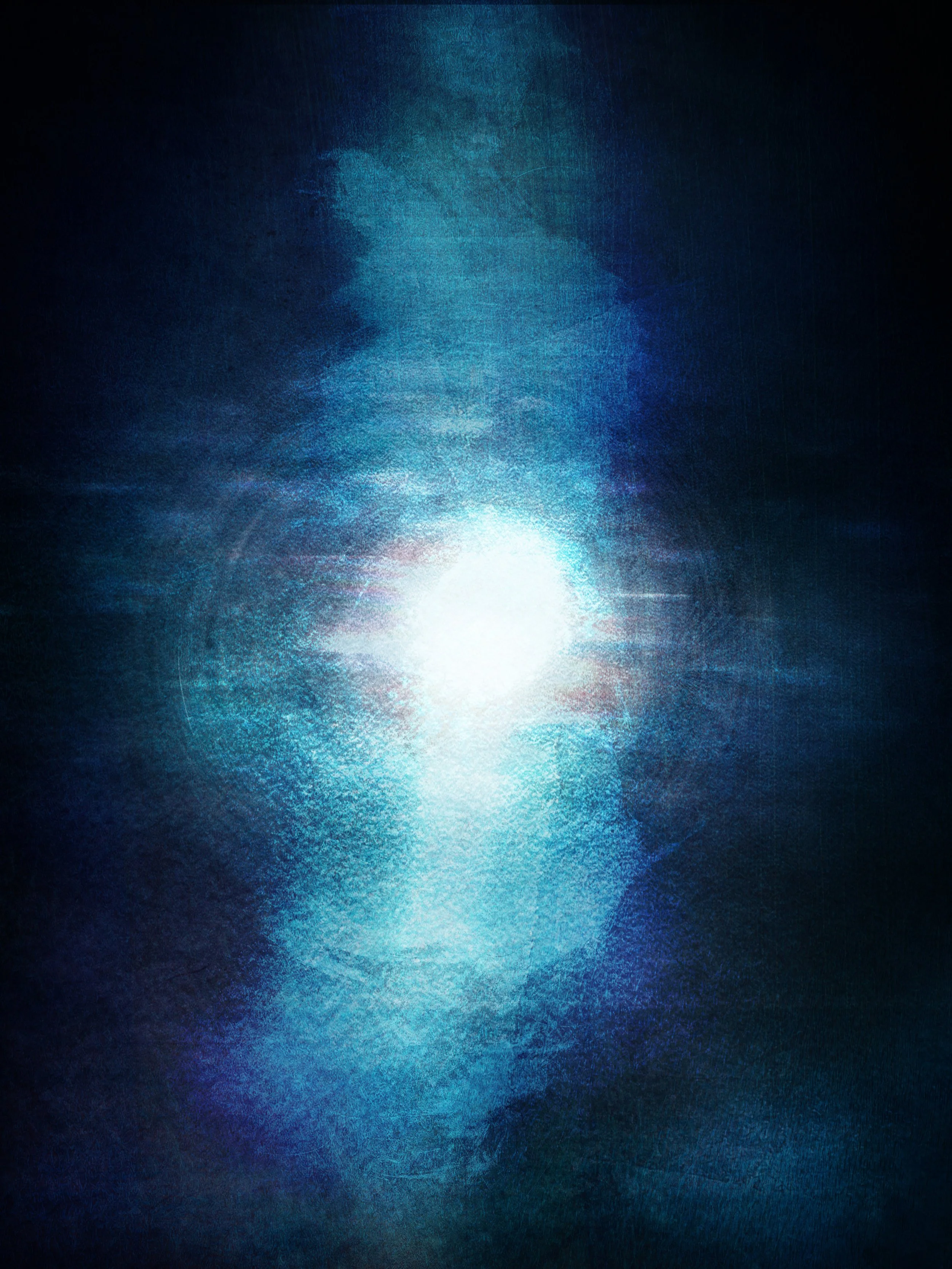 Interdimensional Portal depicts the threshold between worlds where light pierces layered space. The glowing center suggests a passage beyond the visible, while surrounding textures evoke turbulence and resistance. The work invites the viewer to sense transition—an opening into realms that lie just beyond ordinary perception.