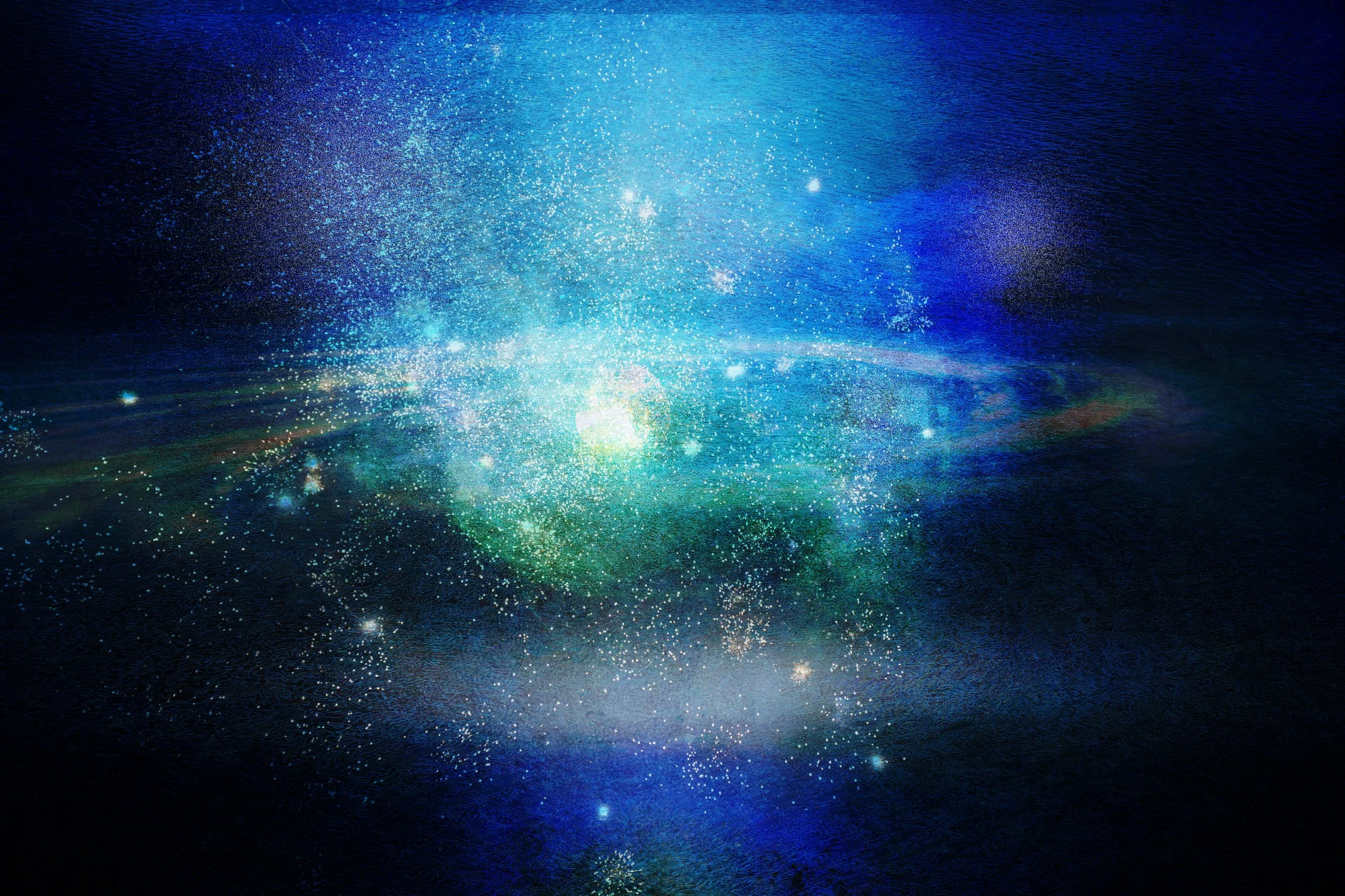 Rising Stars depicts the instant when light begins to organize itself into form. Layers of blue and green converge into a living field, suggesting the birth of perception within cosmic space. The work invites the viewer to witness emergence—the transition from invisible vibration to visible being.