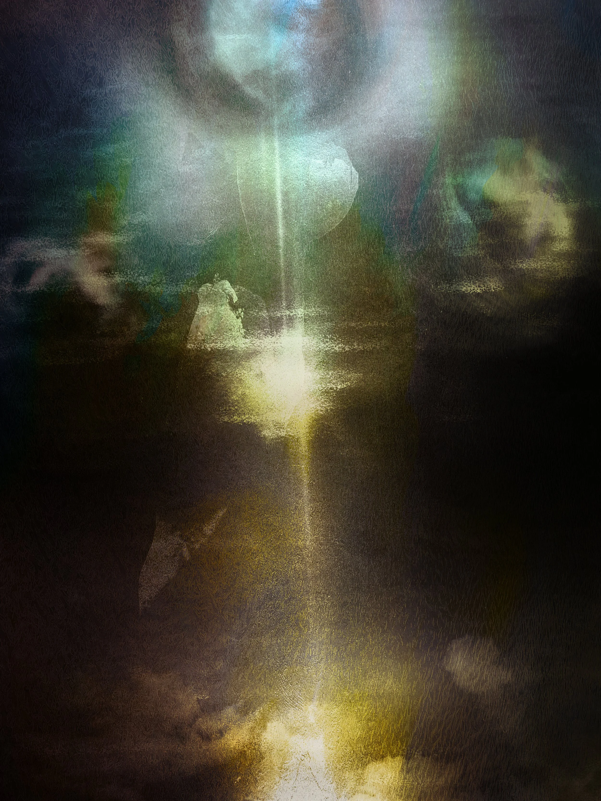Light Descending to Earth envisions the moment when light enters our world, taking form as lightning, waterfall, and gravitational flow. The work binds elemental forces with spiritual descent, merging nature’s power with transcendent presence. It is a vision of arrival—both fragile and immense, fleeting yet eternal.