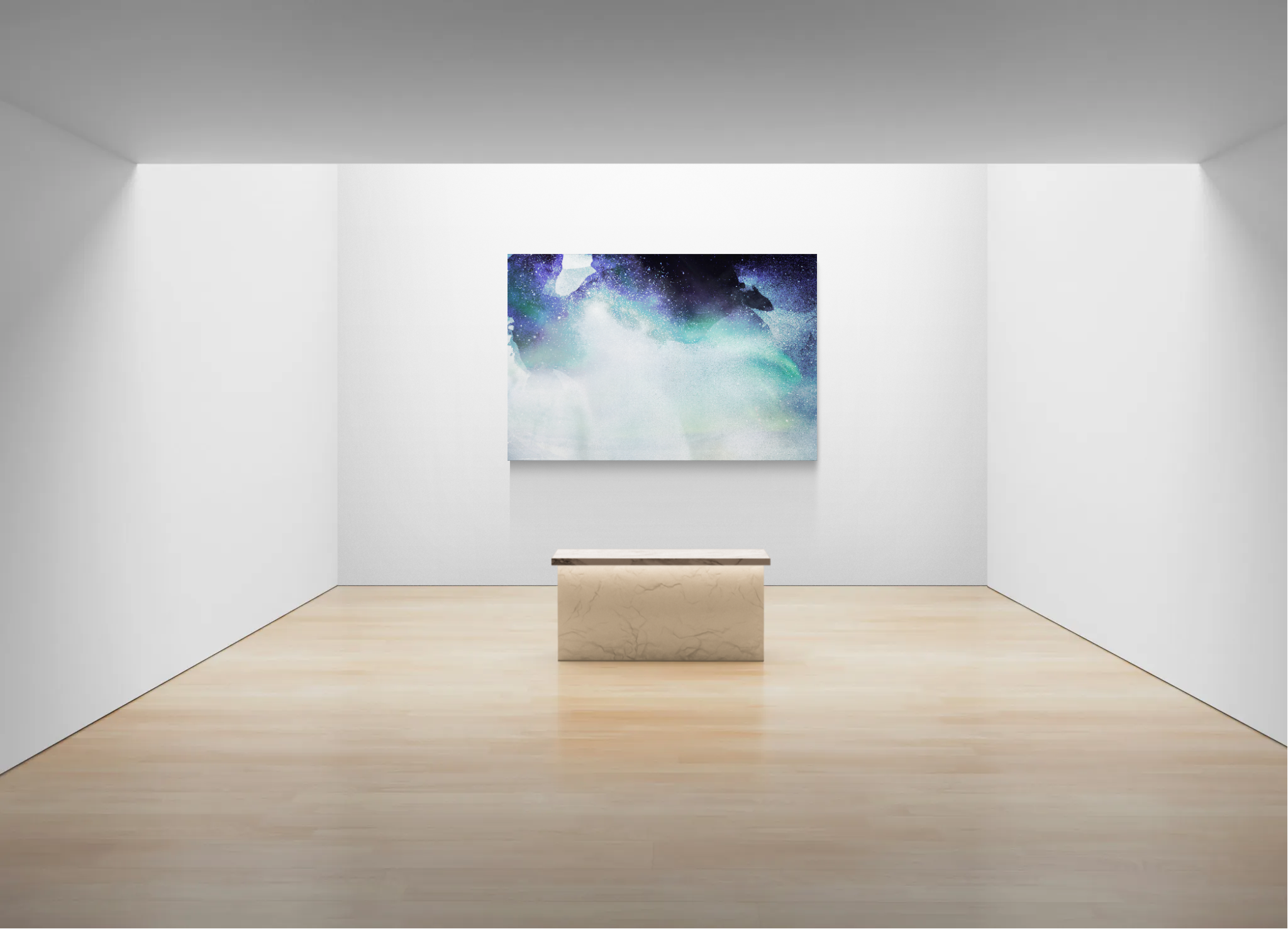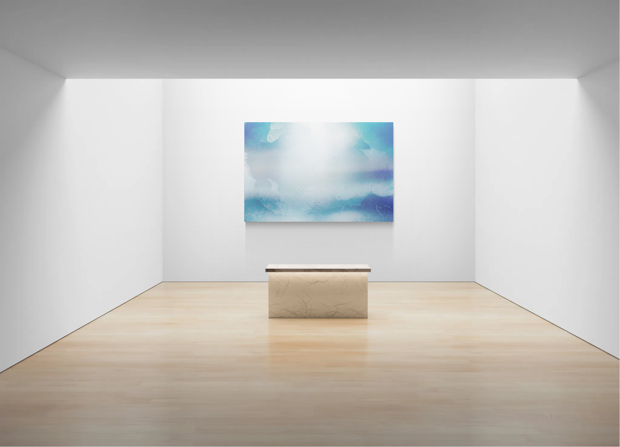 This work portrays soft light originating in a higher-dimensional realm. Even when perceived through a dimensional membrane, the light exceeds that boundary and spills into the three-dimensional world. As light approaches a fully pure condition, it loses mixture and opacity, appearing as a clear, uncontaminated presence. In such a state, purification manifests more strongly, taking the form of a luminous shower that washes across dimensions.