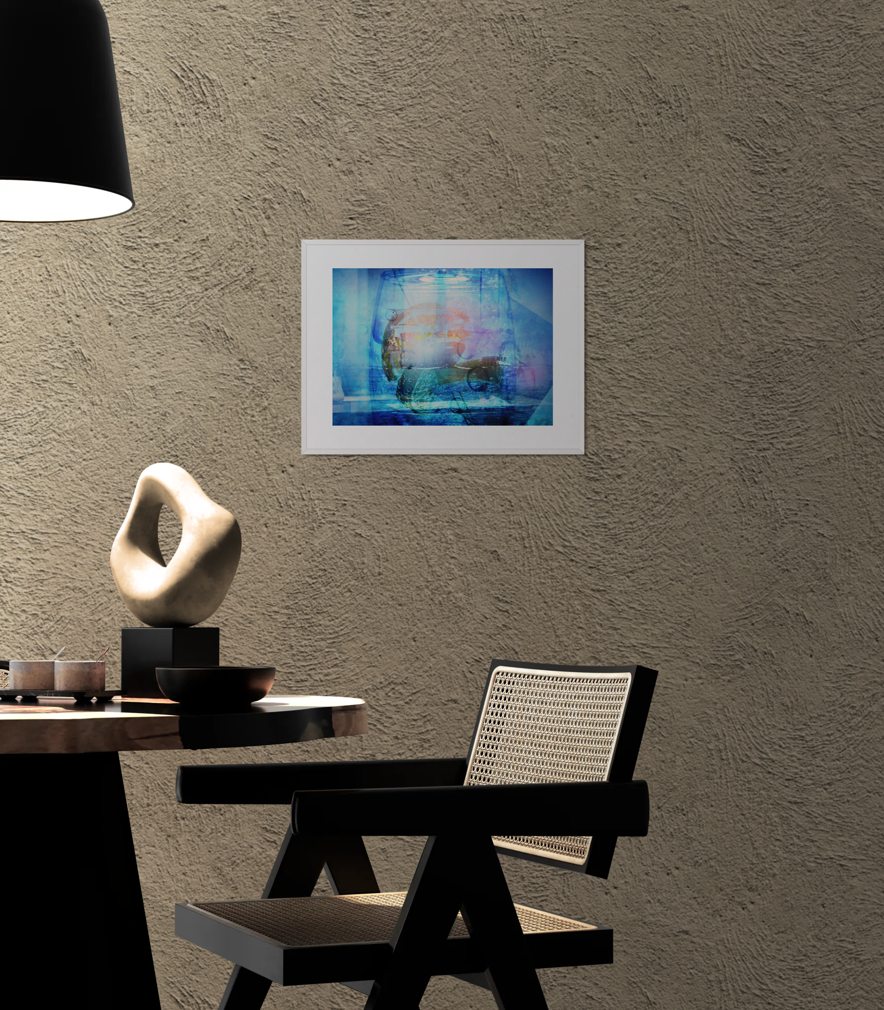 Layers of translucent blues, punctuated by warm, glowing highlights, convey the tension between permanence and impermanence—the enduring sea versus fleeting moments of connection. A dolphin playfully hidden within the composition evokes the innocence of past joys and the faint hope that lingers despite the passage of time. The soda glass serves as a vessel of memory, blurring the boundaries between reality and reverie, while the bubbles and shifting textures recall the transient nature of life and love.