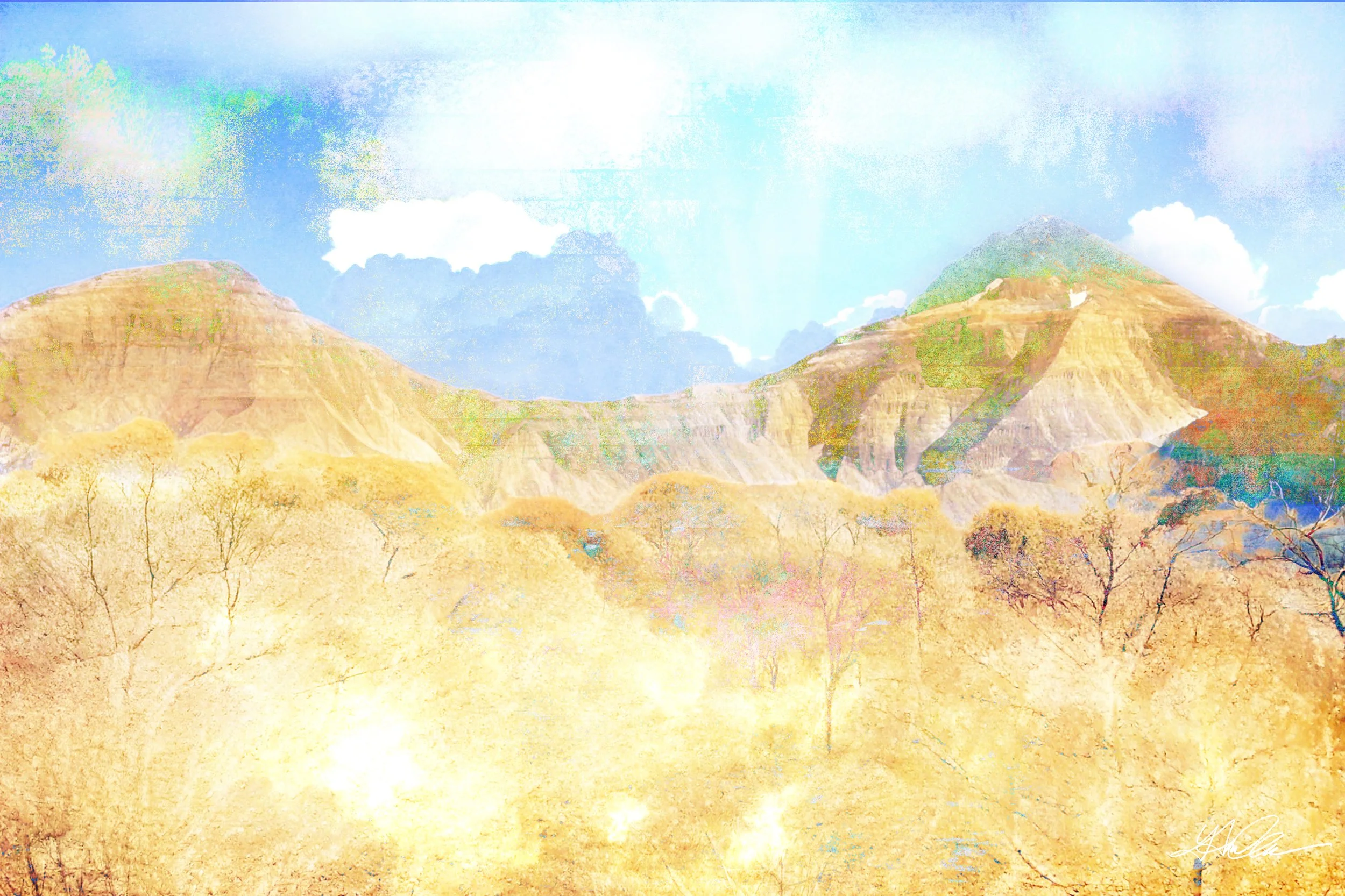The interplay of light and texture evokes a sense of timelessness, as if nature itself has paused to invite contemplation. Through layers of soft illumination and subtle color gradations, I aimed to depict the restorative energy of the region, highlighting its inherent power to heal and inspire.