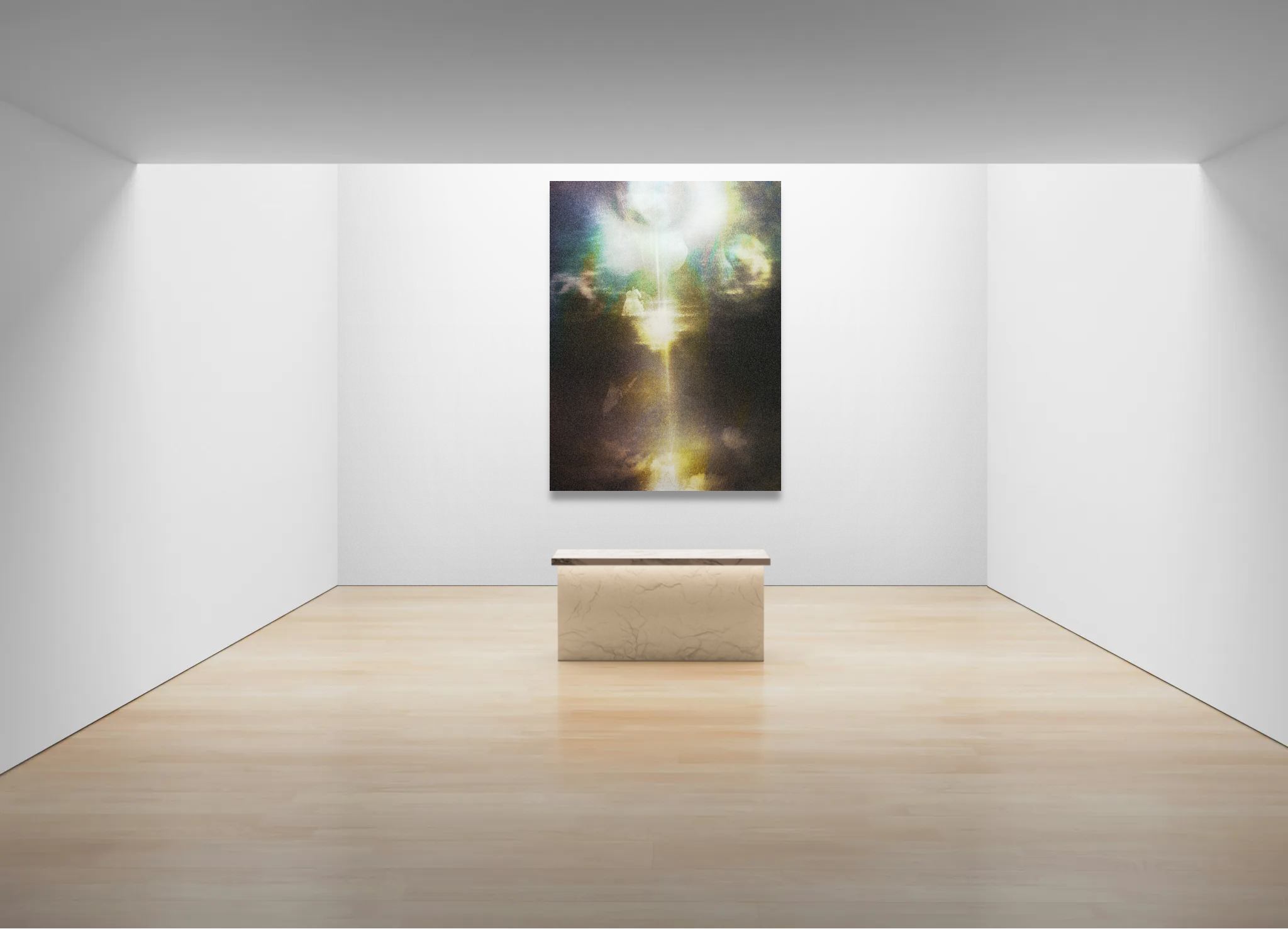 The surrounding colors dissolve into atmosphere, turning into a spectrum that feels both fluid and infinite. Textures move gently across the surface, while the central light remains steady, holding a balance between clarity and transcendence.