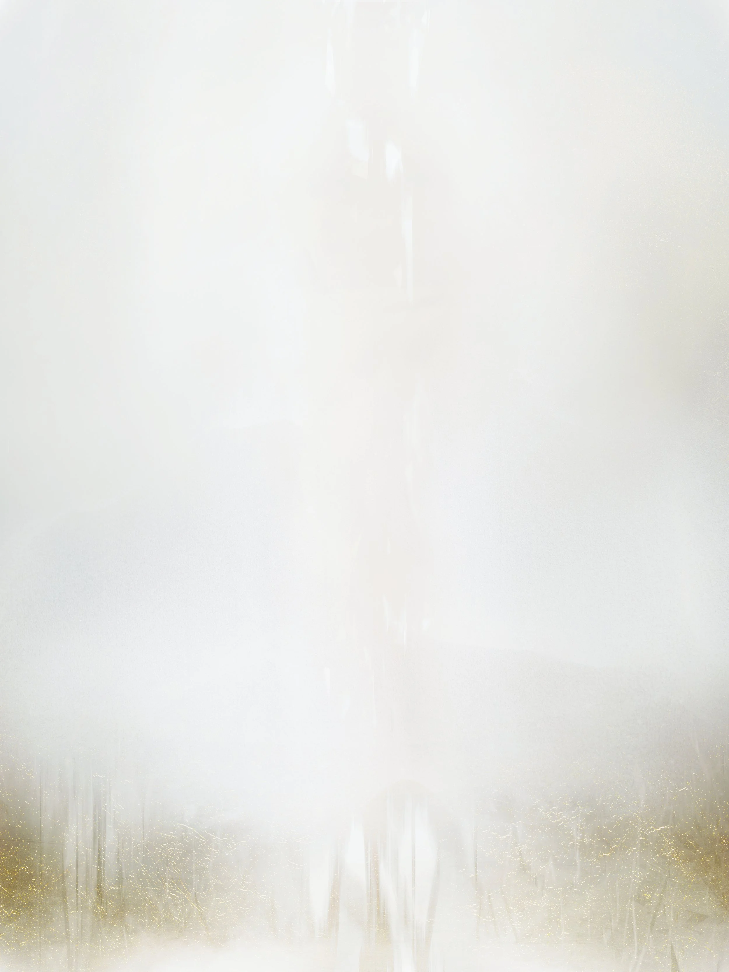 Purification traces the descent of light as a process of cleansing. Vertical streams fall through layered air, dispersing into a luminous mist where presence becomes renewal. Golden particles shimmer within the flow, suggesting the transmission of energy that clears, refines, and transforms. In this work, purification is not symbolic but perceptual — light itself enacts the act of cleansing, entering the world as both atmosphere and spirit.