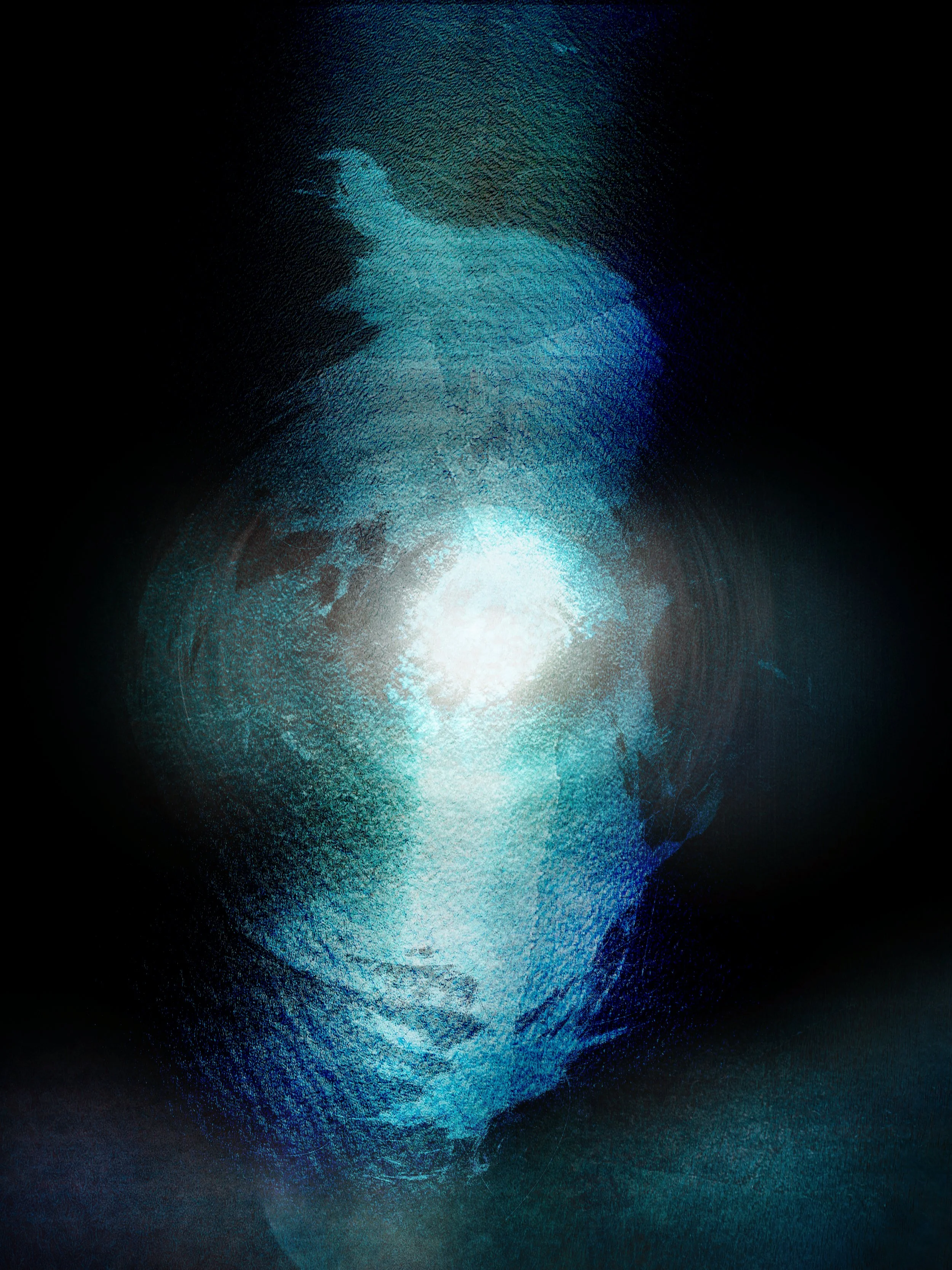 Interdimensional Portal visualizes a passage where light becomes the medium of transformation. At the center, a radiant core expands outward, dissolving the boundary between material depth and immaterial space. The surrounding layers, textured and turbulent, suggest both the resistance of matter and the possibility of breakthrough. This duality creates tension: the viewer is held between the pull of the unknown and the weight of the present.