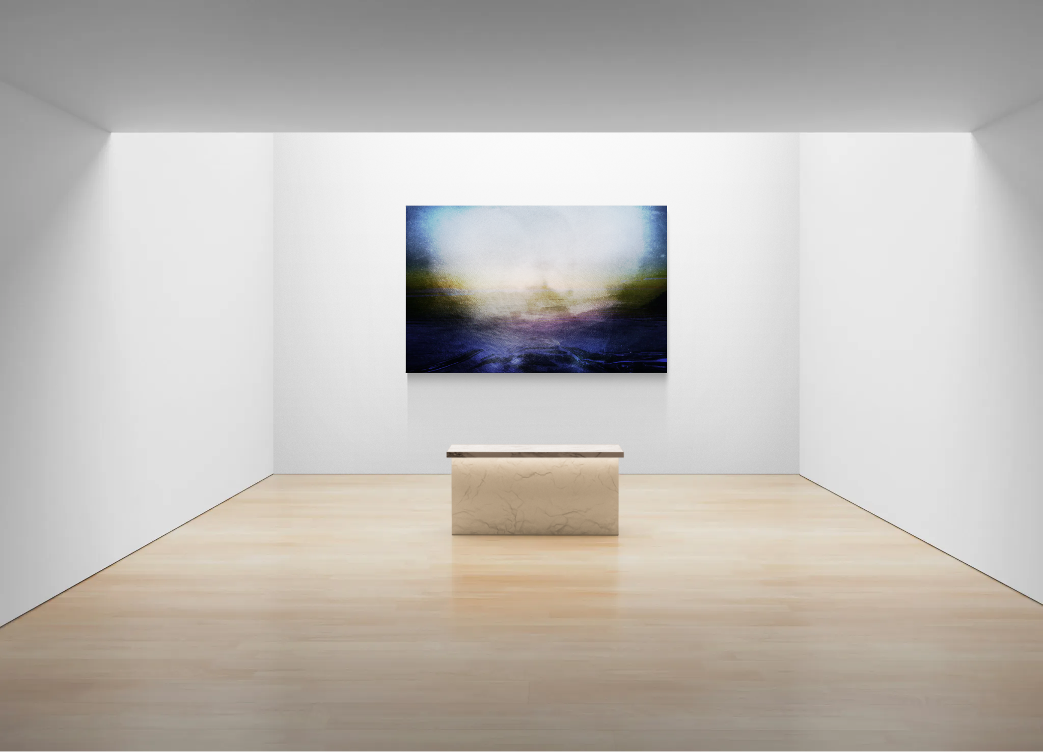 This work depicts light as a cyclical phenomenon, shifting between brightness and darkness in a rhythm comparable to the waxing and waning of the moon. The proportion of illuminated and dimmed areas changes over time, suggesting that light is not static or uniform, but constantly in transition between emergence and retreat.